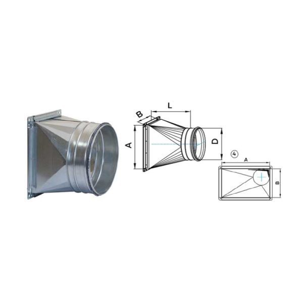 Tabel dimensiuni Piesa de schimbare a sectiunii rectangulare / circulare R TRRC